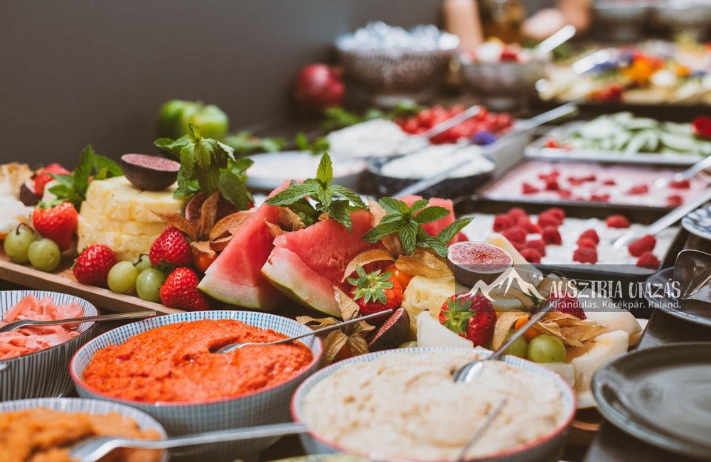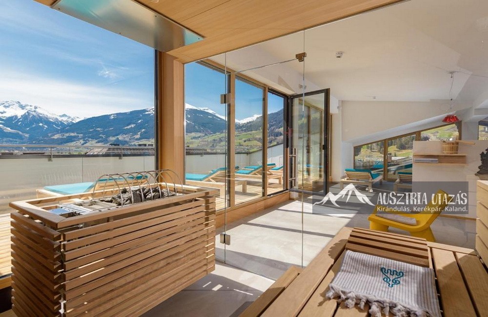A tető a szálloda egyik legkülönlegesebb pontja. Tetőkert, panorámás terasz és egy olyan, 500 m2-es wellness rész, ahol az üvegfalú szaunából egyenesen a gasteini hegyekre látsz. Karnyújtásnyira tényleg ott vannak előtted. Nyáron még egy jógaórát is kaptok ajándékba, ami jól illeszkedik a hotel szemléletéhez: itt tényleg a testi-lelki feltöltődés a cél. A konyha nem nehéz alpesi klasszikusokra épít, inkább a helyi alapanyagokra épülő, friss, könnyed fogásokra, ami igazán jól esik egy aktív nap után.